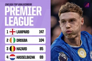體育資訊12月15日訊 英超第16輪比賽,帕爾默復(fù)出破門(mén),幫助切爾西主場(chǎng)2-0擊敗埃弗頓。帕爾默為切爾西攻入39粒英超進(jìn)球,排名切爾西隊(duì)史英超射手榜第9位。