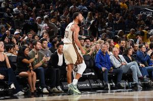 本場比賽,庫里26中16、其中三分球19中12空砍48分3板2助3斷1帽,正負(fù)值-8。