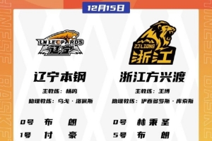 體育資訊12月15日訊 今晚7點(diǎn)35分,遼寧男籃將在主場對陣廣廈男籃。